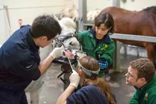 Our equine dental clinic is one of the leading centres for equine dentistry in the world and we train veterinarians from around the world in this speciality, as well as our own undergraduate and postgraduate students. Our dental treatments include oral extractions of cheek teeth, endodontic therapy (root canal treatment) of fractured teeth, orthodontic treatment (bracing) of parrot mouth foals, diastema widening, filling of carious upper cheek teeth to prevent fractures and specialised dental maintenance for high-performance sports horses. This article was published on 2024-09-02